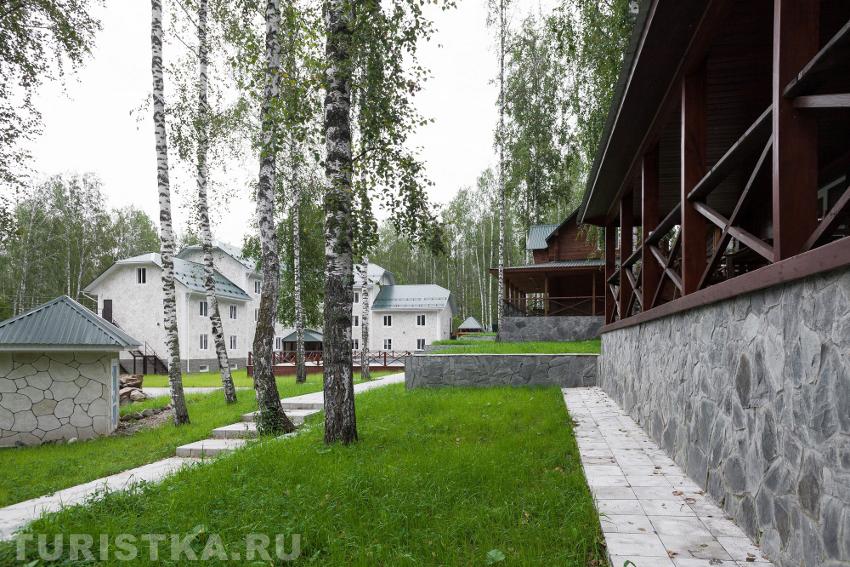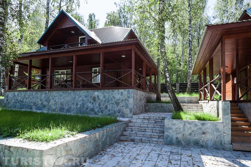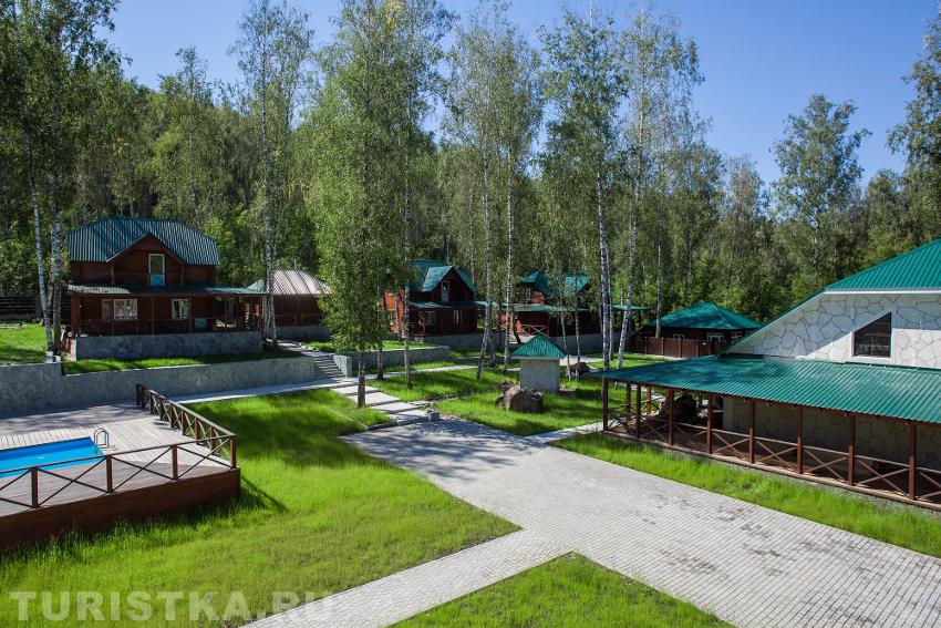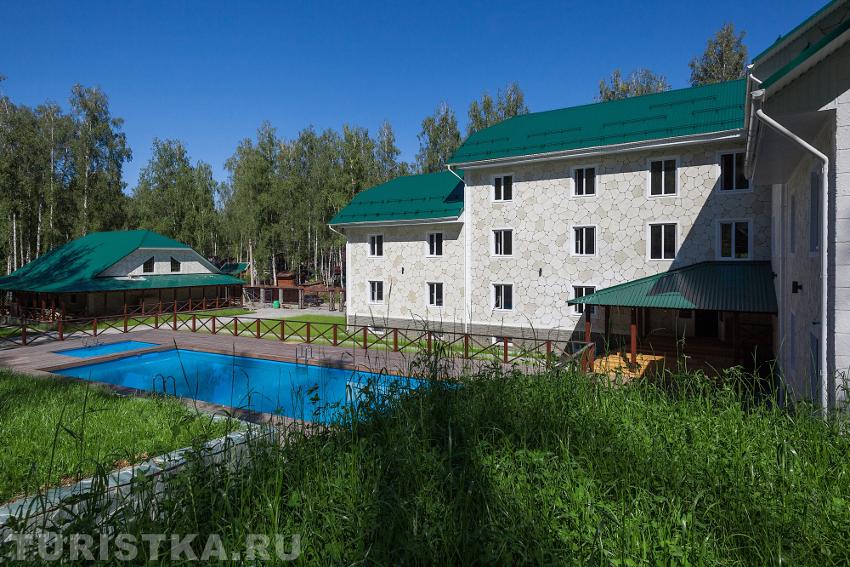 Инфраструктура: гостиничный корпус ( 3-х этажное здание), 4 комфортабельных двухэтажных коттеджа, ресторан с летней террасой, беседки для отдыха, парковка, летний бассейн+шезлонги, 2 кедровые бани (в банях имеются комната отдыха, отдельная мойка и парилка. В большой бане есть купель, рассчитана на 12 человек, вторая вмещает до 4 человек.). Детская площадка.