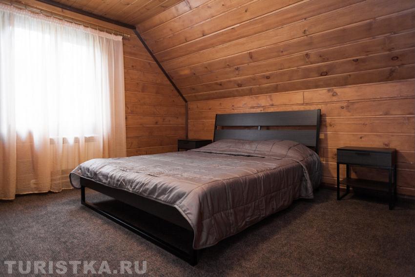 | К4 | 2 | Двухэтажный коттедж. В доме два отдельных входа. На первом этаже: гостиная, санузел. На втором этаже расположены 1 спальня и балкон с видом на благоустроенную территорию туркомплекса. В гостиной: мягкая мебель (раскладной диван), шкаф, ТВ, журнальный столик. В туалетной комнате: комплект полотенец, фен. В спальне: двухспальная кровать, тумбочки, шкаф. Просторная веранда со столом и стульями, на которой можно отлично проводить время на свежем воздухе. 4основных места (с возможностью доставить доп. места). |